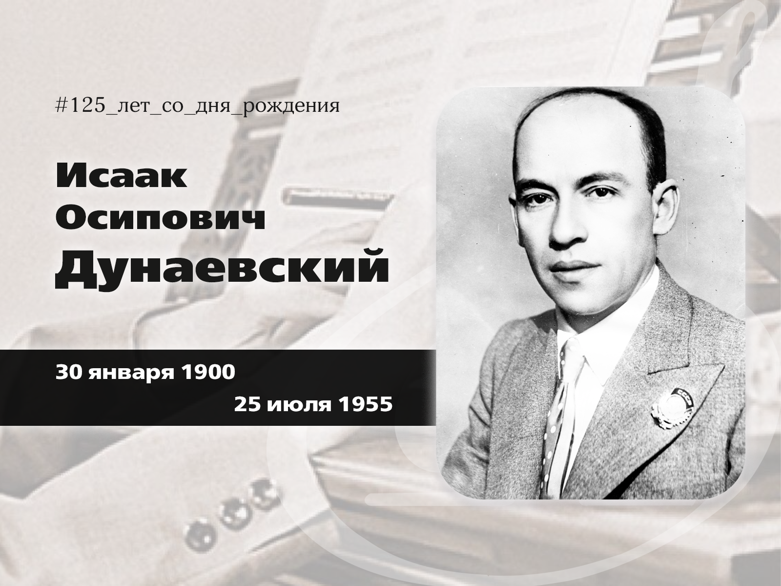 К 125-летию со дня рождения Исаака Дунаевского