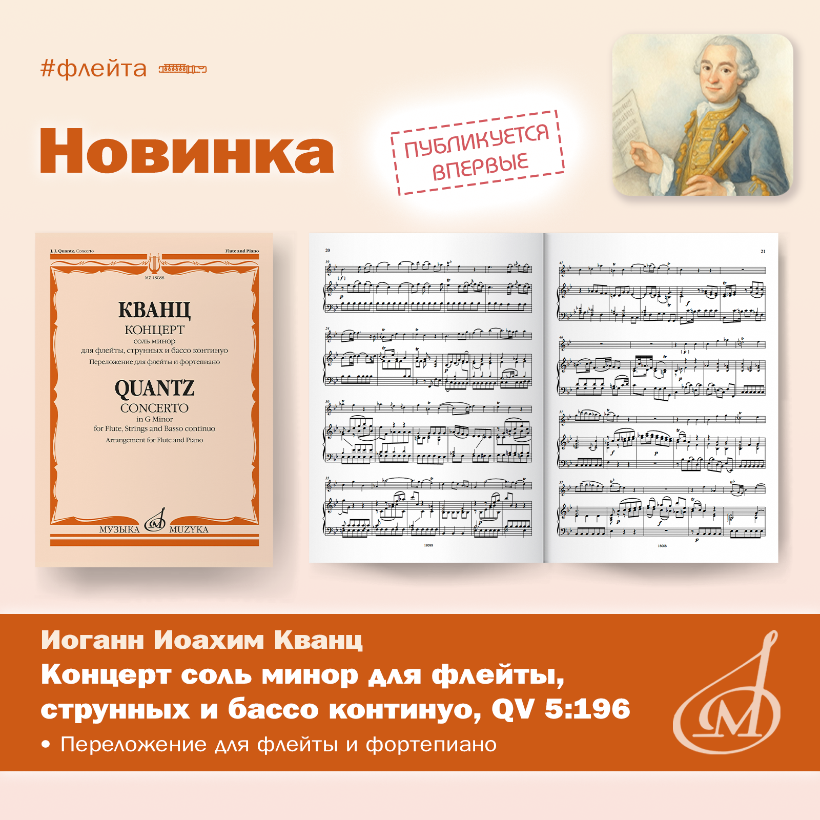 Новинка: И. Кванц. Концерт соль минор для флейты, струнных и бассо континуо (QV 5:196). Переложение для флейты и фортепиано, редакция и каденции О. Ивушейковой