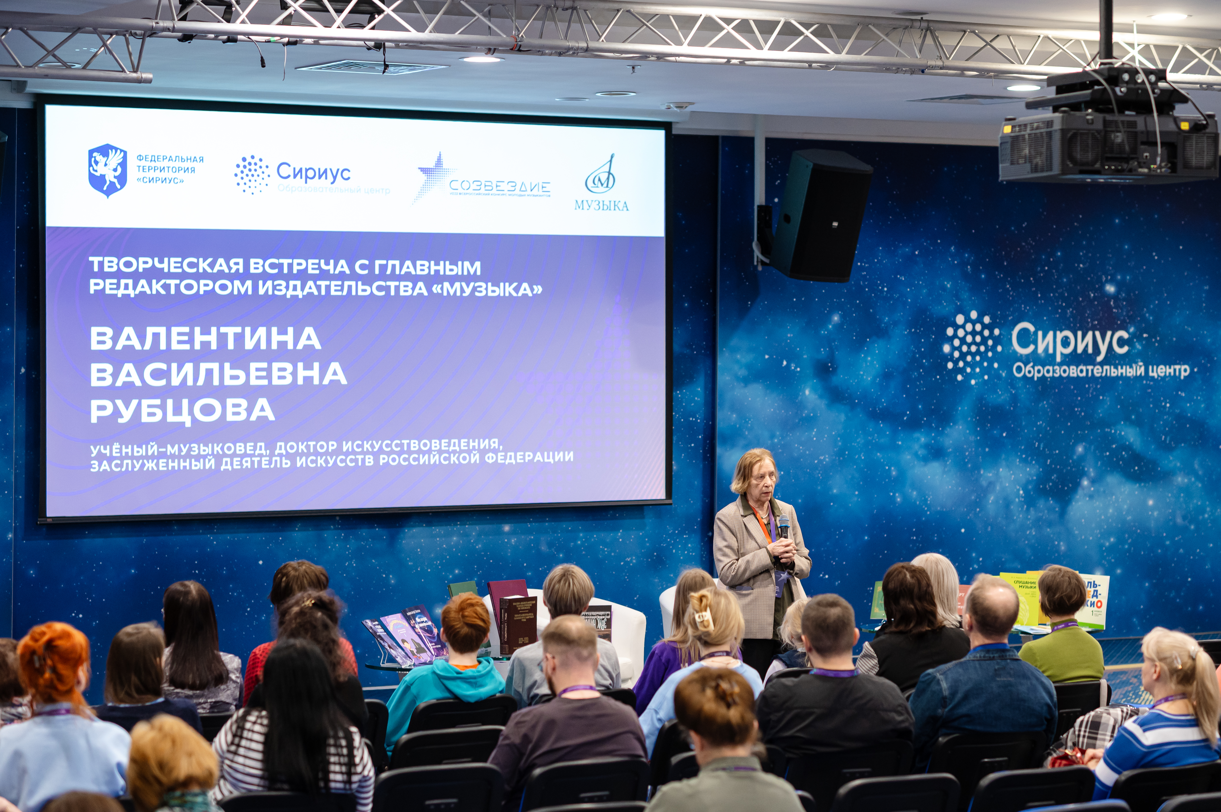 Особое внимание в программе уделено взаимодействию с профессиональным сообществом: представители издательства приняли участие в реализации программы повышения квалификации для преподавателей музыкального искусства. Это взаимодействие позволит укрепить методическую базу региональных школ и транслировать передовой опыт экспертов. Состоялись творческие встречи с кандидатом искусствоведения, руководителем отдела развития и продвижения издательства Ж. В. Савицкой, посвящённые интерактивным технологиям в области музыкального образования. Отдельным событием стала встреча с главным редактором издательства, доктором искусствоведения В. В. Рубцовой. Всё это сделало присутствие «Музыки» не формальным, а по-настоящему содержательным: через встречу, обмен опытом, поддержку молодых музыкантов и прямой разговор с профессиональным сообществом.